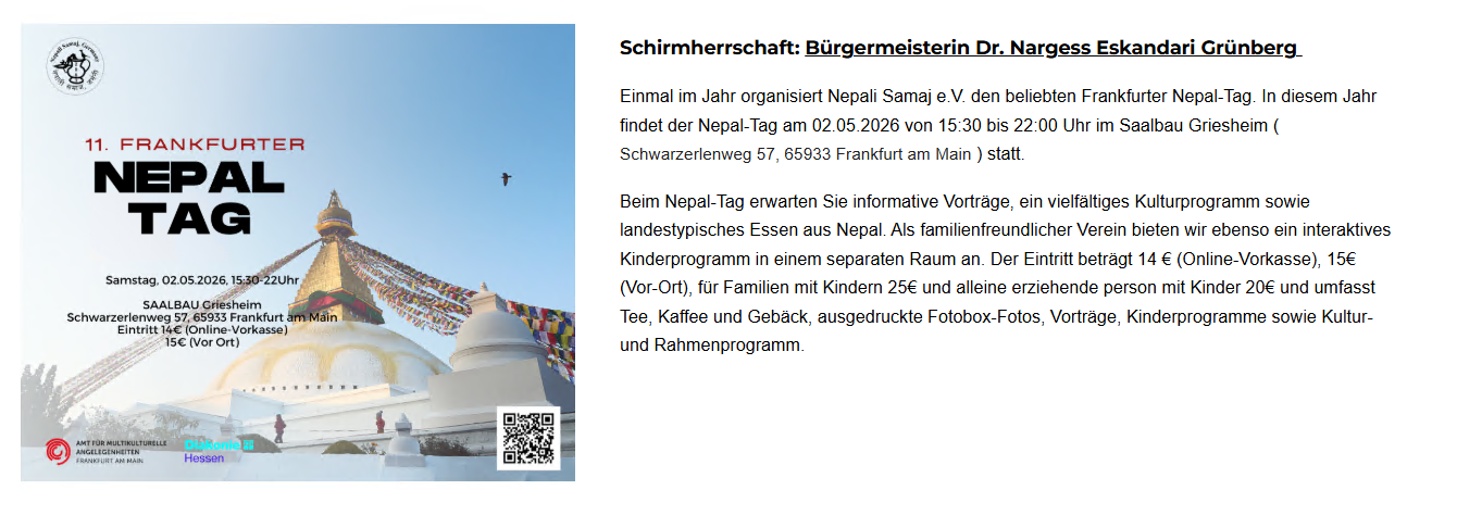 Schön, dass Sie mit uns Verbindung treten wollen! Nutzen Sie gerne unsere E-Mail Adresse, Postanschrift oder Social Media Kanäle für alle Fragen rund um Nepali Samaj e. V. und diese Website.